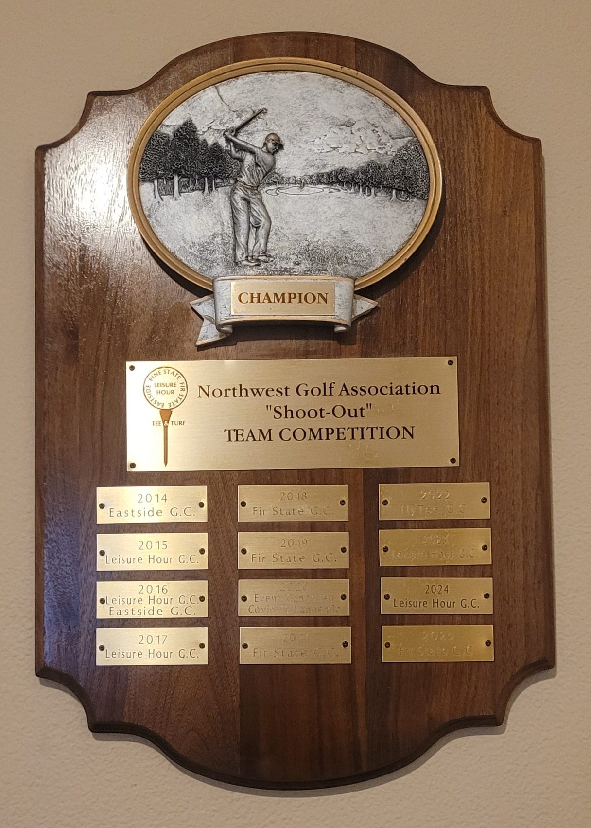 NWGA Clubs Team Competition, Saturday’s play only: The net scores from the best Twelve (12) players from each club will determine the overall Team Competition winner for the current calendar year. Each club must have a minimum of four (4) players to qualify for the team competition and to activate Mr. Par (Mr. Par will make-up the remaining Eight (8) players for the club, with each player given the scorecard par value for the golf course). NOTE: Each Club is required to submit $100 towards the prize fund for this competition even if you are unable to attend or field a team.